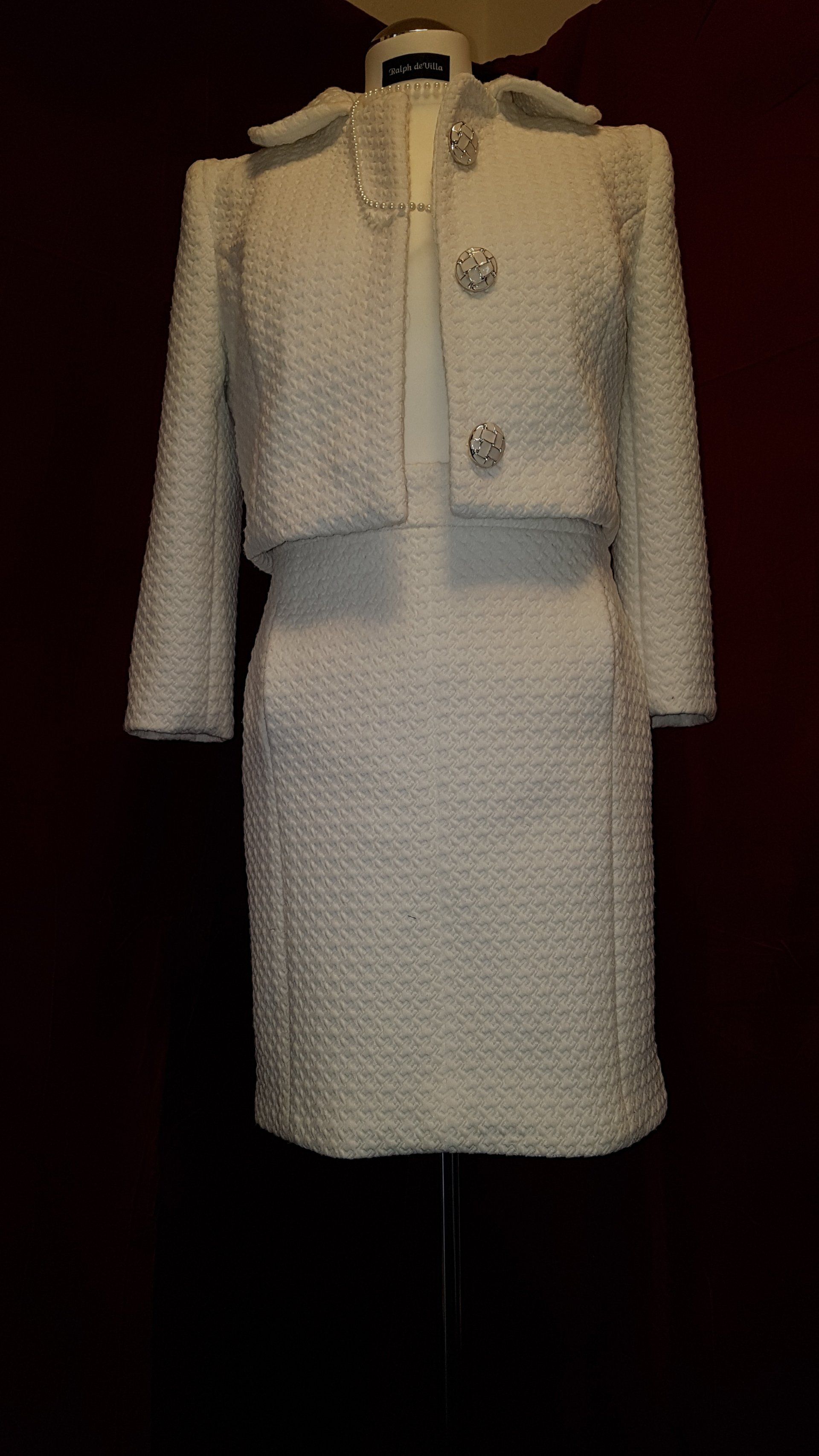 1954 präsentierte Coco Chanel ihre Interpretation der Kombination, das Chanel-Kostüm.