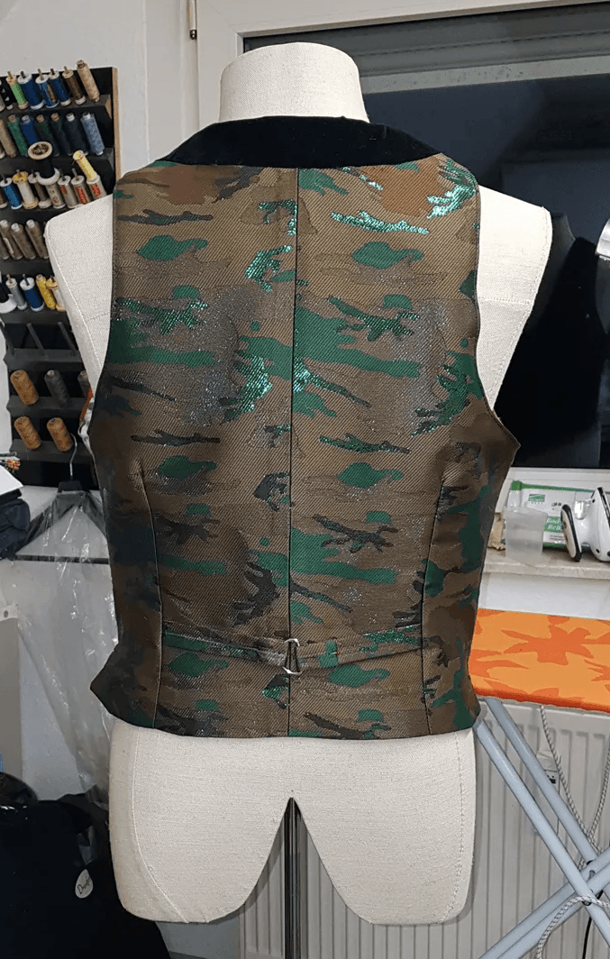 - ·als einreihige Weste mit 3 bis 6 Knöpfen oder zweireihige Weste mit 4 oder 6 Köpfen