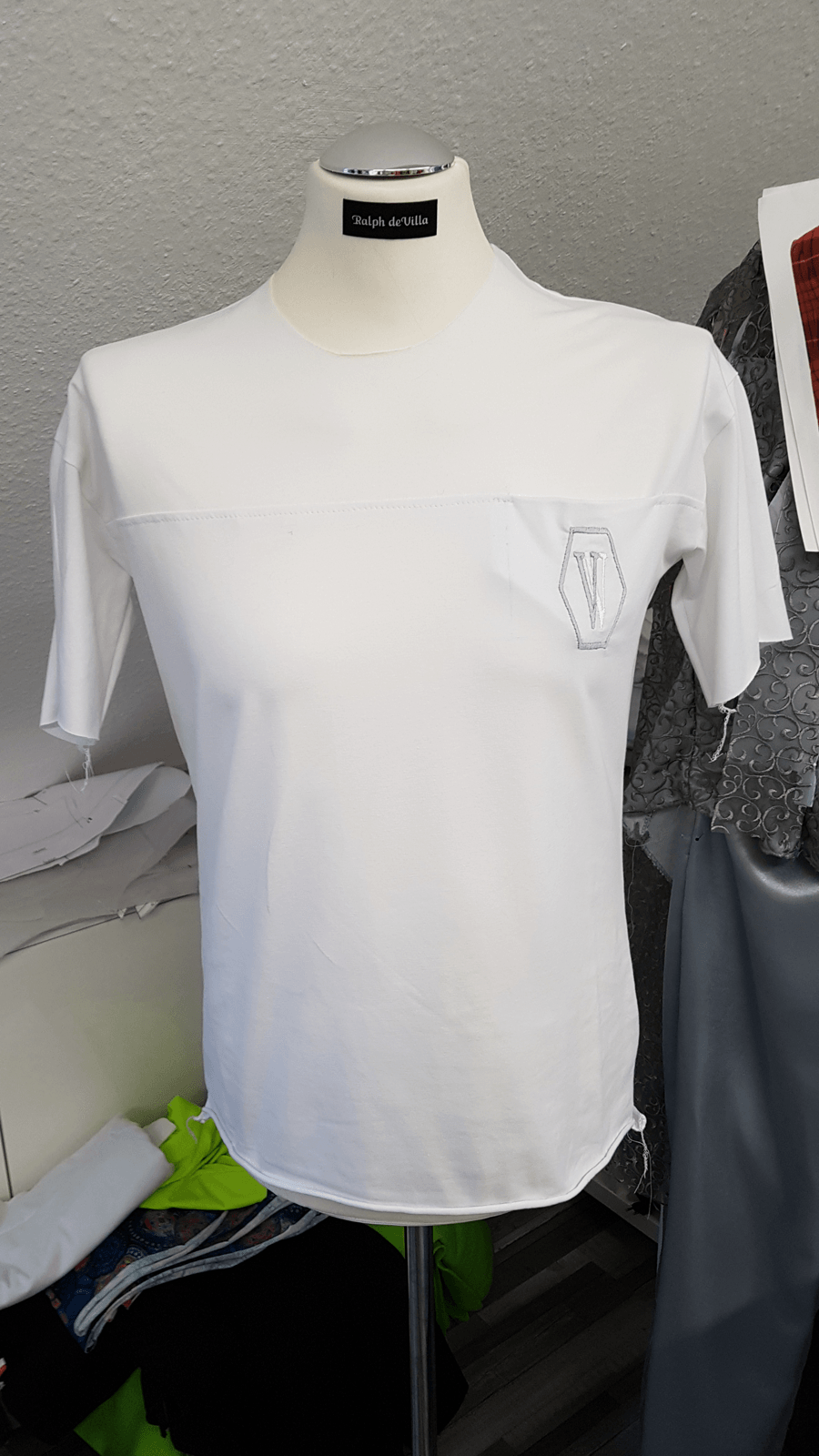 Ein T-Shirt ist ein Stoffhemd, das nach der T-Form seines Körpers und seiner Ärmel benannt ist. Traditionell hat es kurze Ärmel und einen Rundhalsausschnitt, dem ein Kragen fehlt. Sie bestehen typischerweise aus Baumwolltextil in einem Stockinette- oder Jerseystrick, der im Vergleich zu Hemden aus gewebtem Stoff eine unverwechselbar biegsame Textur aufweist.